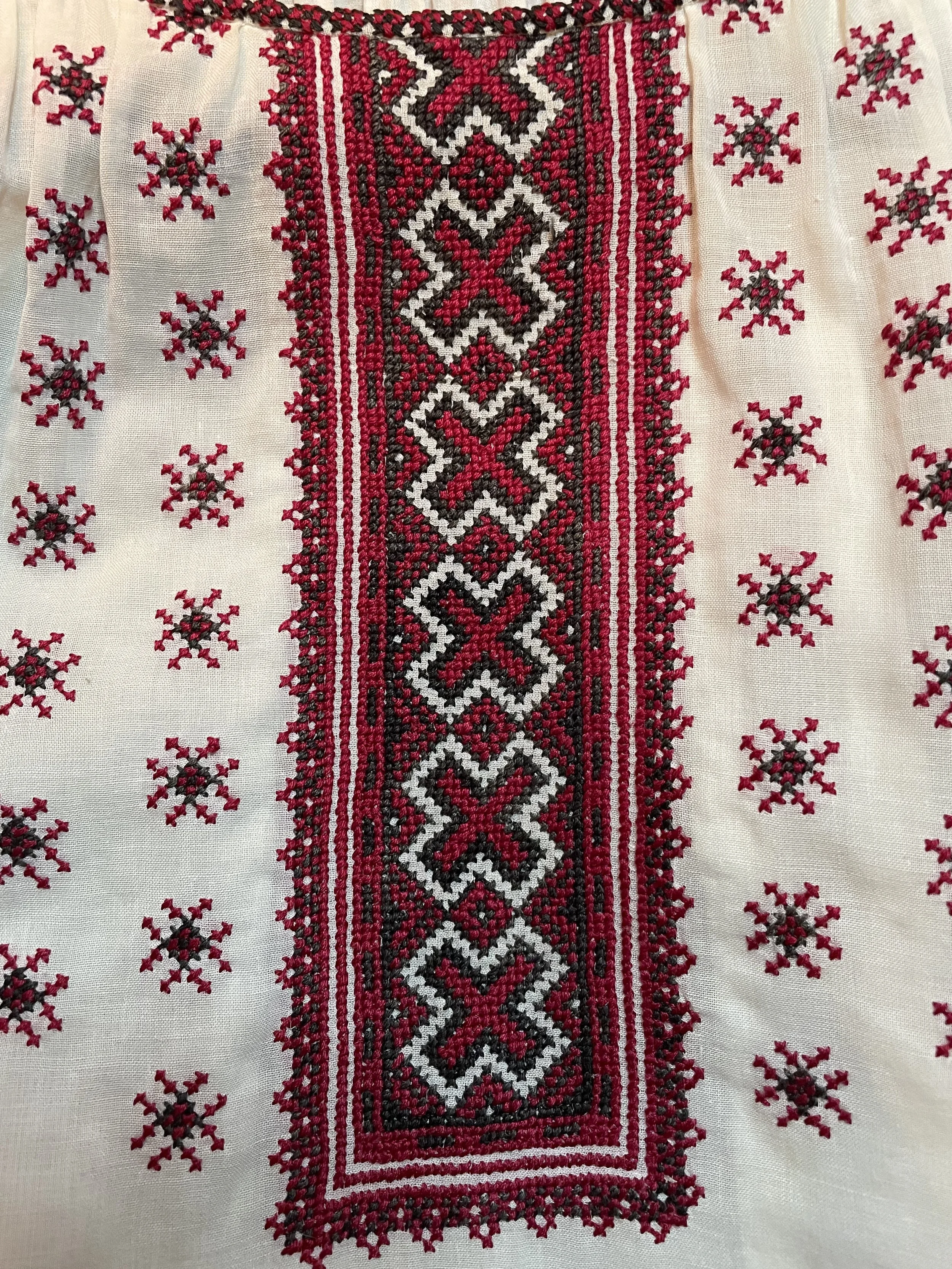 She was an avid embroiderer using traditional Ukrainian cross stitch methods. She made many vyshyvankas (embroidered blouses), some of which would be shown in art museums in Kyiv due to their incredible detail and artistry.