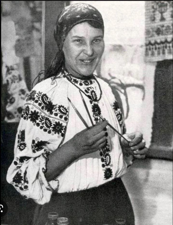 Maria was born in 1908 in the village of Bolotnia, in Kyiv Oblast. As a survivor of Stalin’s 1933 Holomodor, a genocidal famine which killed more than 4 million Ukrainians, her paintings show so much beauty and goodness and also pain and terror.